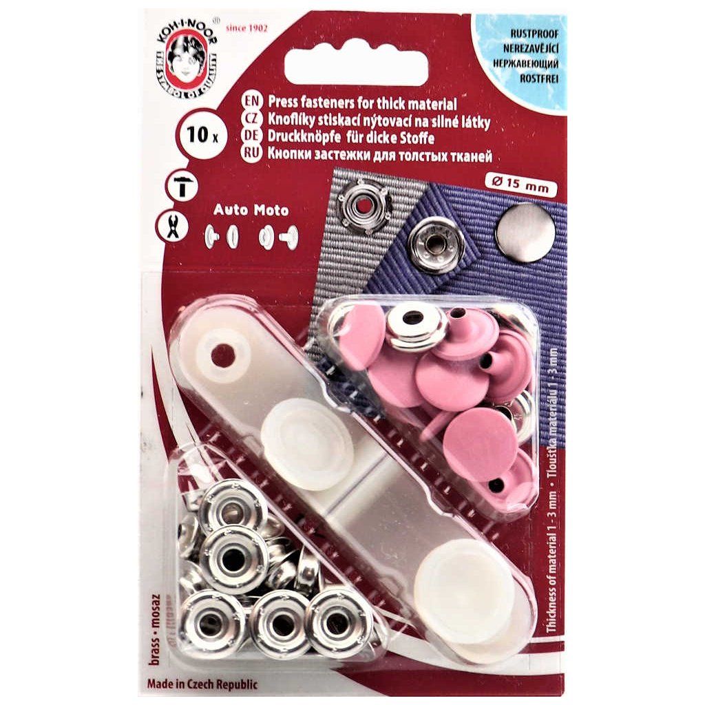 Nýtovací knoflíky AUTO-MOTO, o průměru 15 mm jsou vhodné ke spojování silnějších látek.