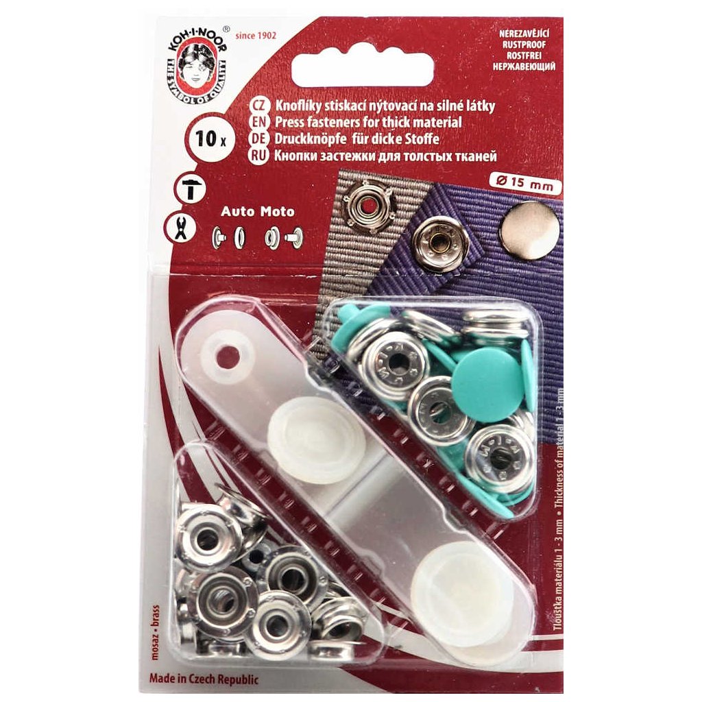 Nýtovací knoflíky AUTO-MOTO, o průměru 15 mm jsou vhodné ke spojování silnějších látek.