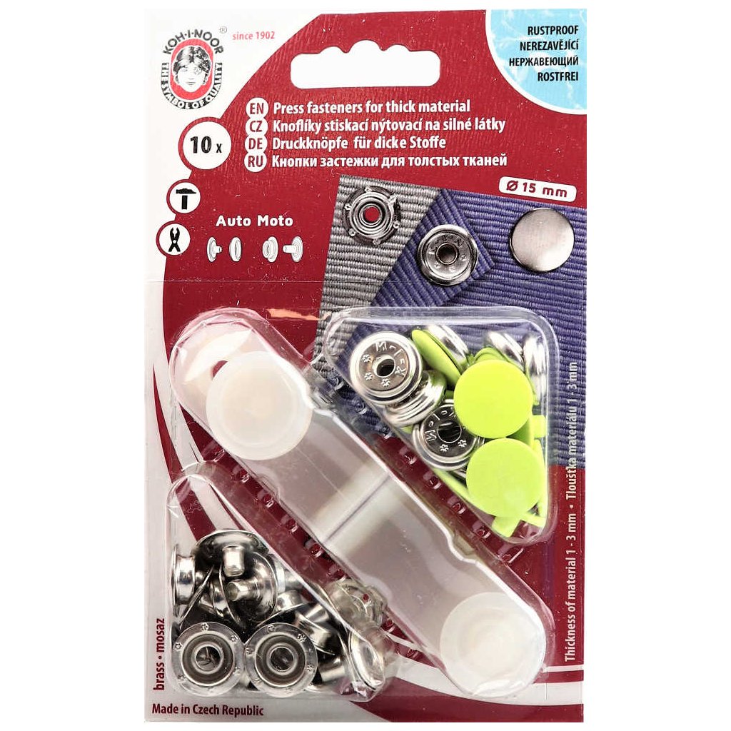 Nýtovací knoflíky AUTO-MOTO, o průměru 15 mm jsou vhodné ke spojování silnějších látek.