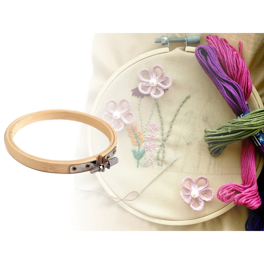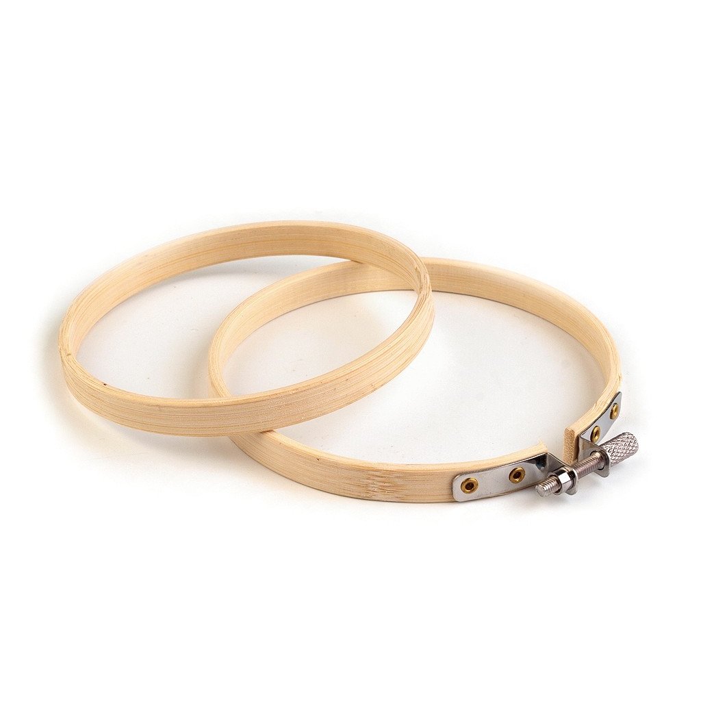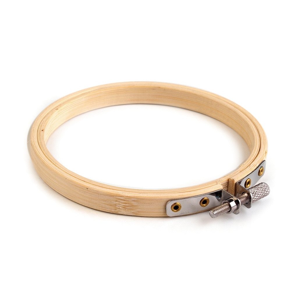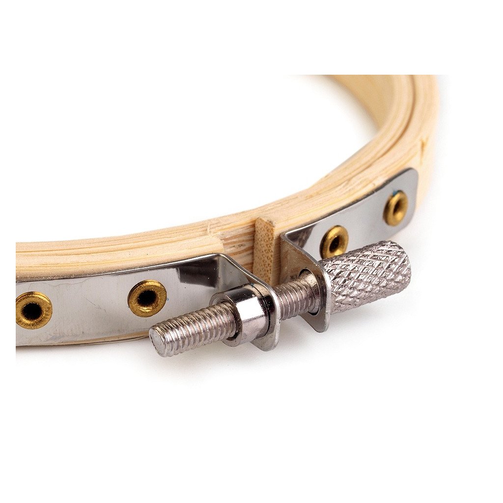 Bamboo embroidery circle 10 cm. Material:bamboo, metal.Outer diameter:11 cm.Medium average:10.3 cm.Inner diameter:9.7 cm. Width:1 cm.Bamboo embroidery circle[[[with a diameter of 12,5 cm is fitted with a metal screw. The circle ensures that the fabric is turned off when embroidering, so that it is easier to work and the stitches are regular.]]]]