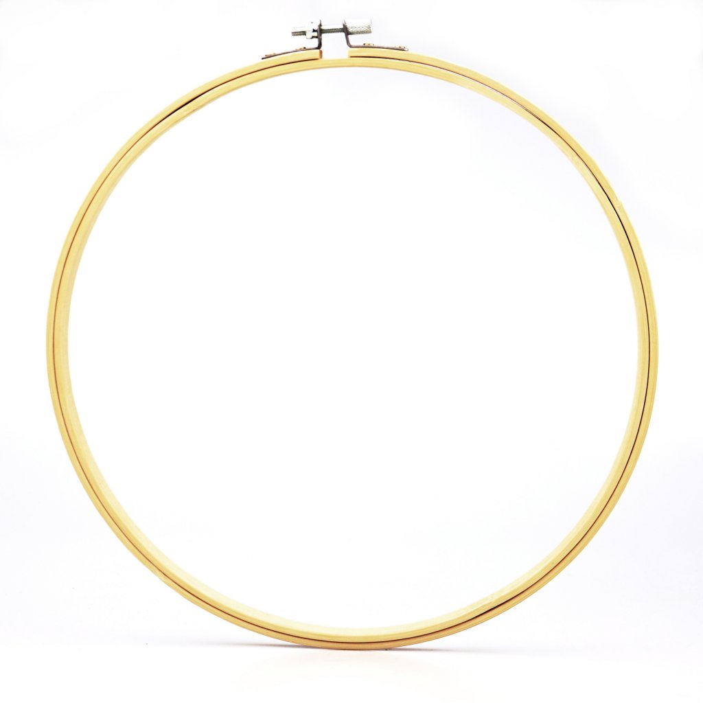 Bamboo embroidery circlediameter 26,5 cm with metal screw. The circle ensures that the fabric is switched off when embroidering, so that it is easier to work and the stitches are regular.Outer diameter:26,5 cm