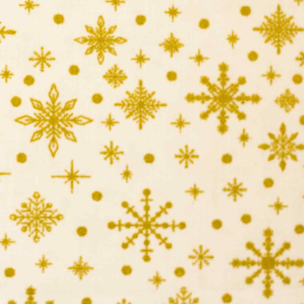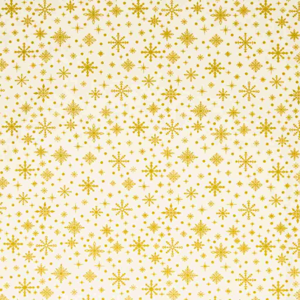 Cotton Christmas fabric with gold flakes on cream.