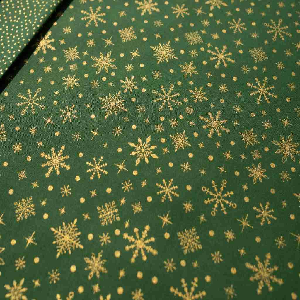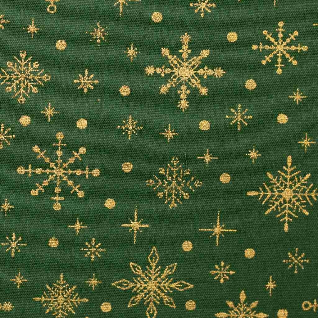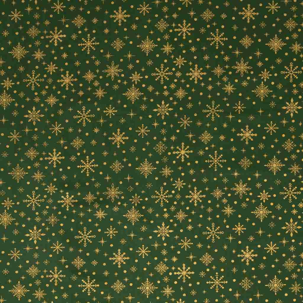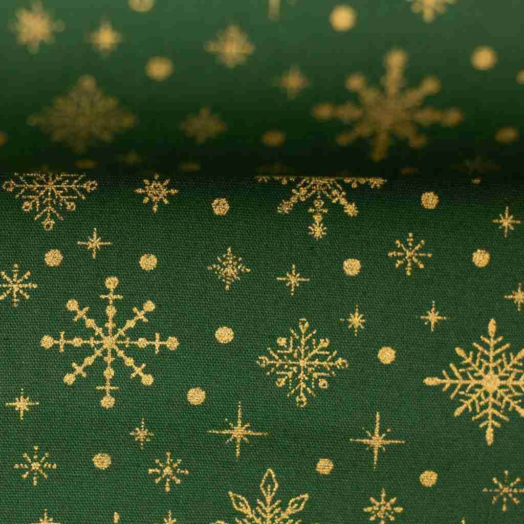 Bavlněná látka vánoční Neuss zlaté vločky zelená