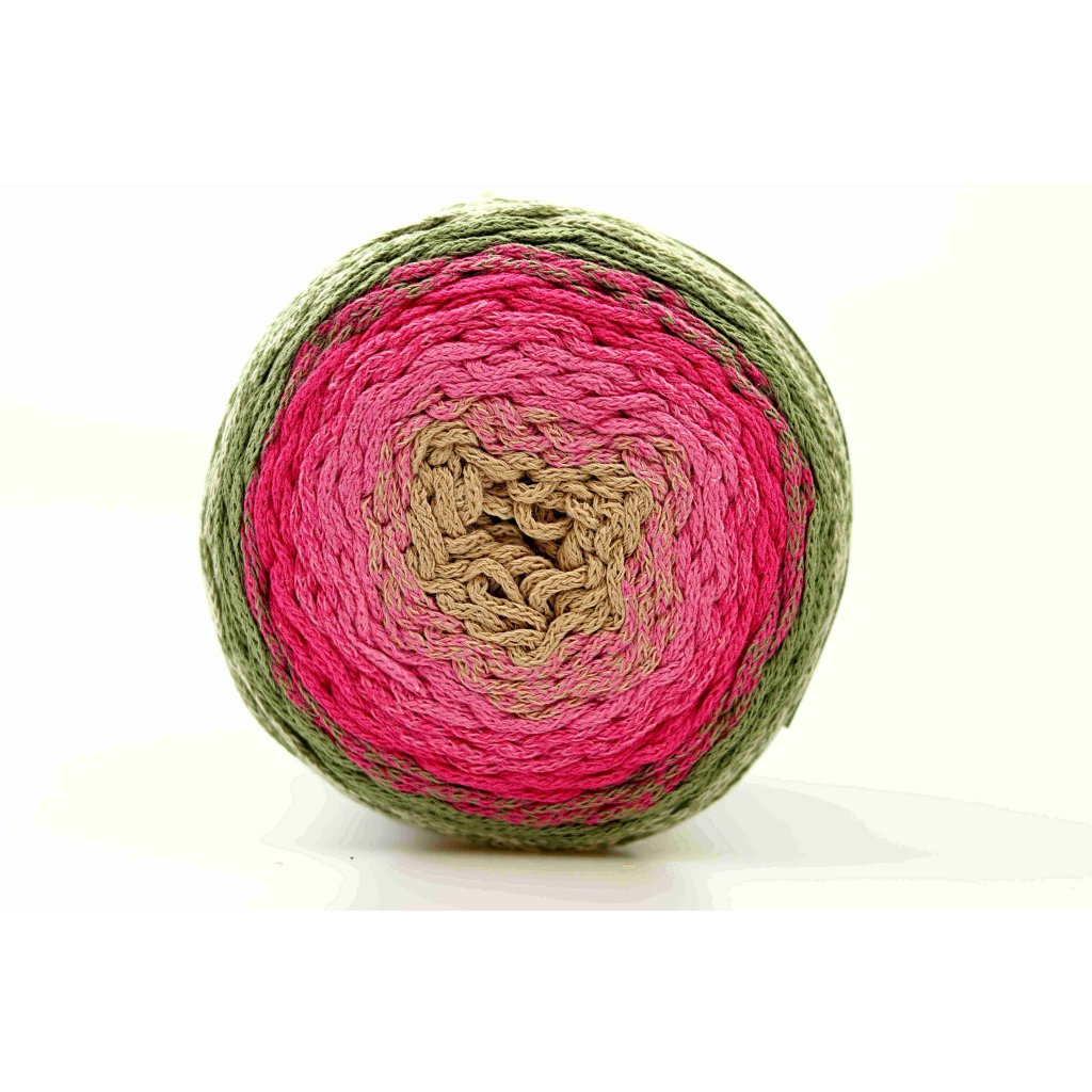 Chainy Cotton Cakeis a coloured self-sampling "cord" with a diameter of approx. 2 mm (a ball in various rich and subtle shades, which creates beautiful colour transitions and combinations in the knitted fabric).