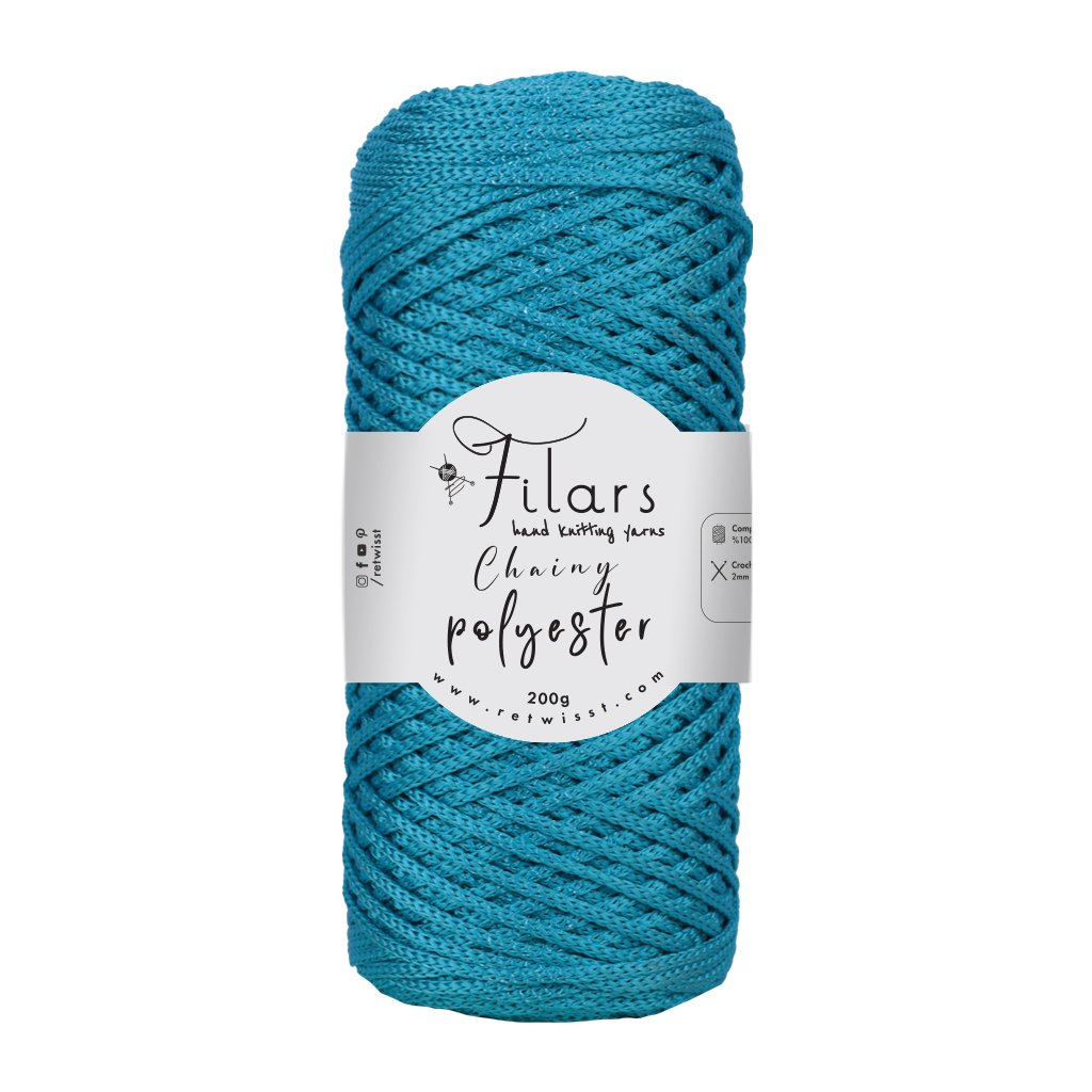 Polyester yarnChainy polyesteris a glossy string yarn, which you can use mainly for making handbags, bags, nets. Backpacks, bracelets, pot covers, placemats and other accessories.