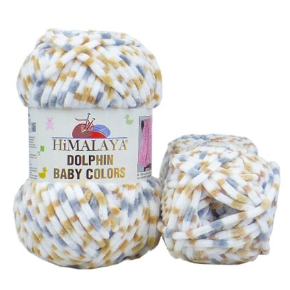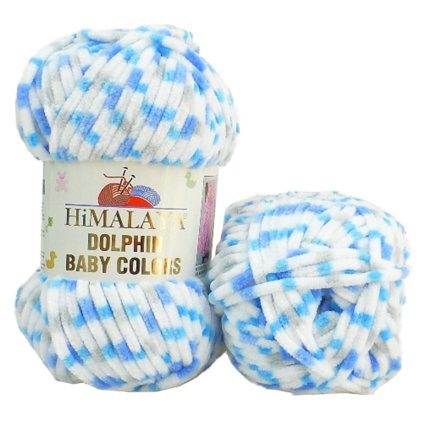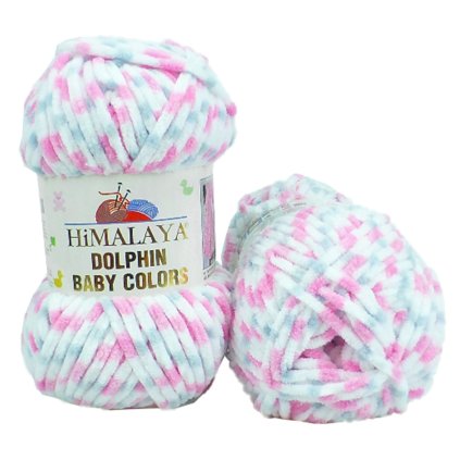 Příze Dolphin Baby Colors je 100 % polyesterová příze. Jedná se o žinylkovou přízi, která je krásně měkounká a jemná. Vhodná na dečky, hračky i oblečky pro miminka.