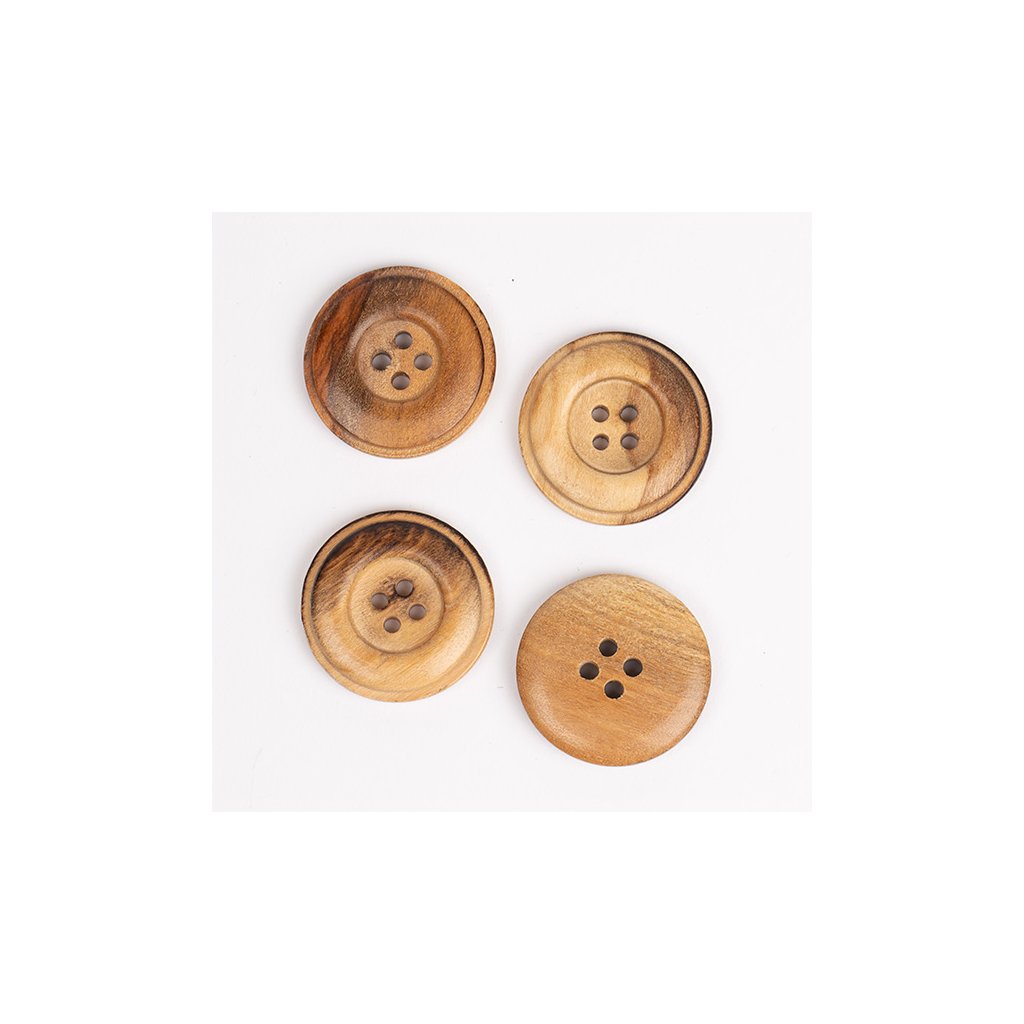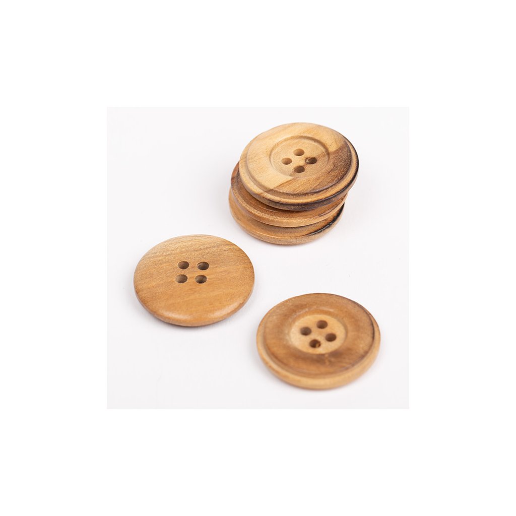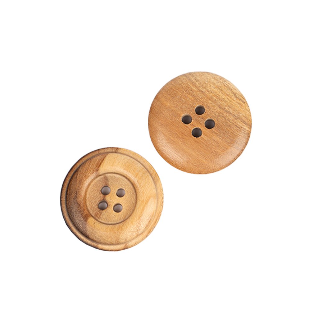 The smooth and durable olive wood buttons have a glossy wooden texture.