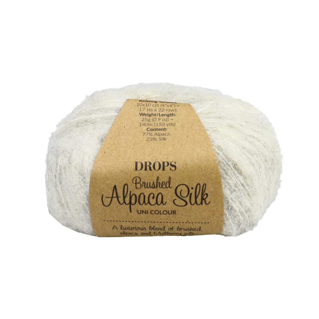 Drops Brushed Alpaca Silkis a really soft, soft yarn in a unique combination of combed Peruvian alpaca and mulberry silk. Knitted from these exceptional natural materials, it is lightweight and very warm at the same time. It is also often combined with other yarns to give a subtle luxury effect. The colour palette includes light pastels and rich bold tones. We recommend it for hats, scarves, sweaters, cardigans or cardigans which you should remember to take gentle care of afterwards.