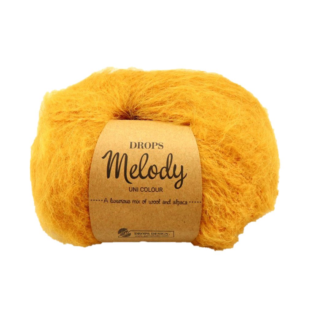 YarnMelody's DropsExtremely soft and lightweight, and therefore as well suited to bulky knits as to accessories. On strong needles it quickly gains volume but not weight, so it is also ideal for sweaters, ponchos or larger scarves. This yarn can also be used as a fancy yarn with another type of yarn - it adds volume and softens the knit.