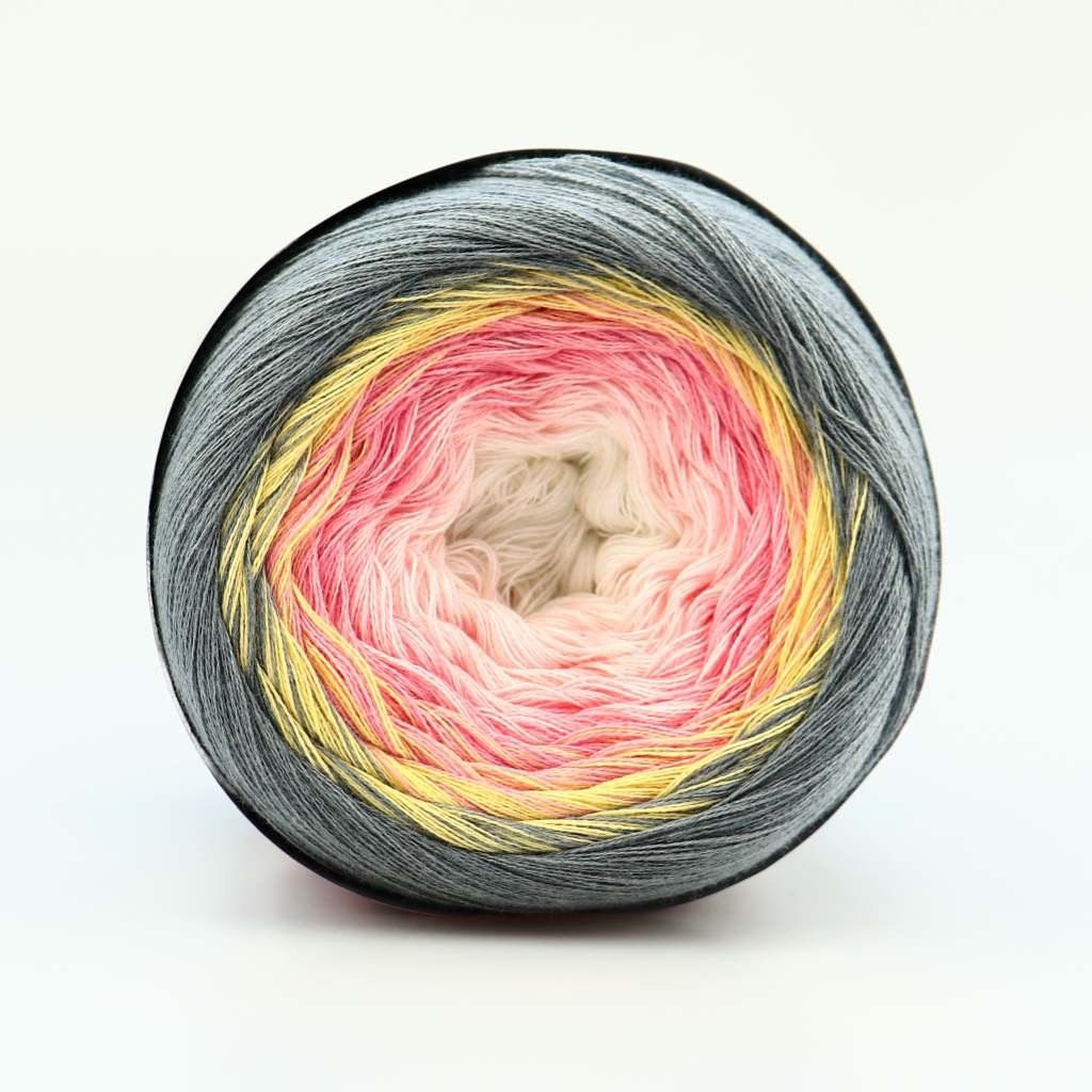 YarnFilars Soft Cakeis a 4-strand rainbow ball that makes beautiful cardigans, sweaters, ponchos, dresses, skirts.