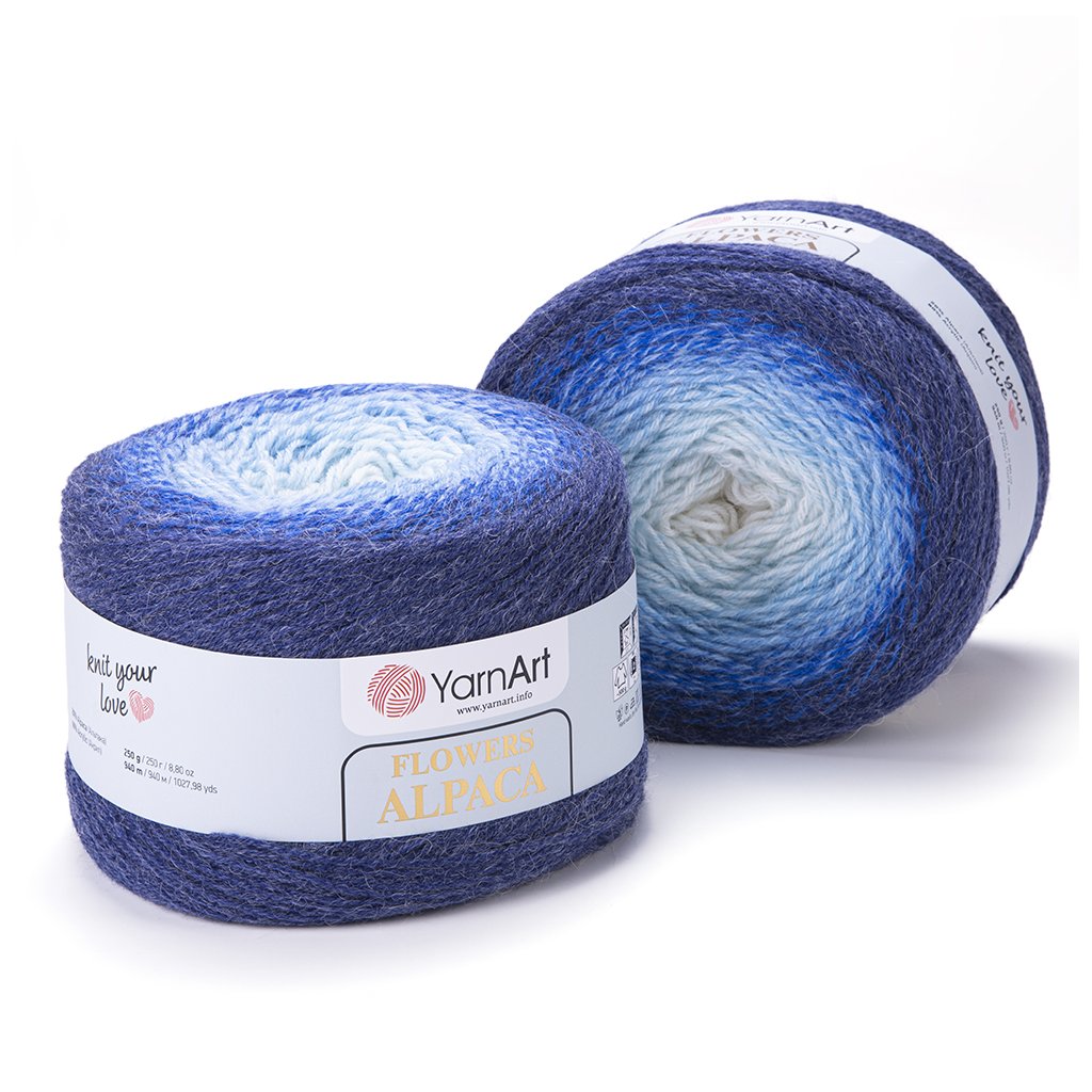YarnFlowers Alpacais a medium weight iridescent acrylic yarn with 20% alpaca wool.
