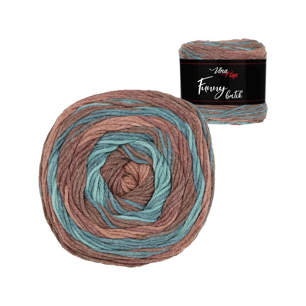 Yarn Funny batikis suitable for various types of hand knitting and crochet and allows the creation of original patterns and effects - the colours have longer colour gradients and stripes are created.