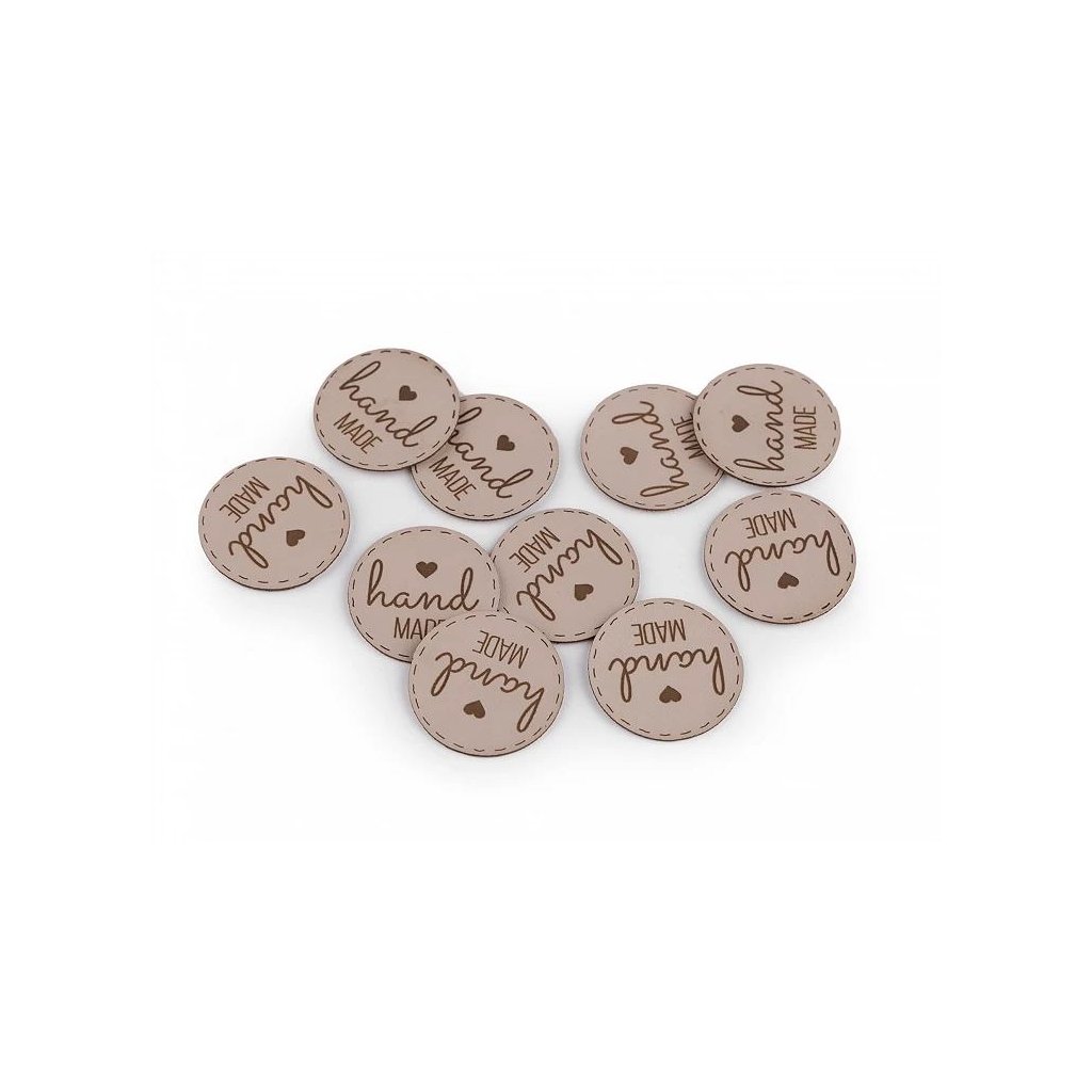 Paper sign round with inscription Hand made, Ø 35 mm.