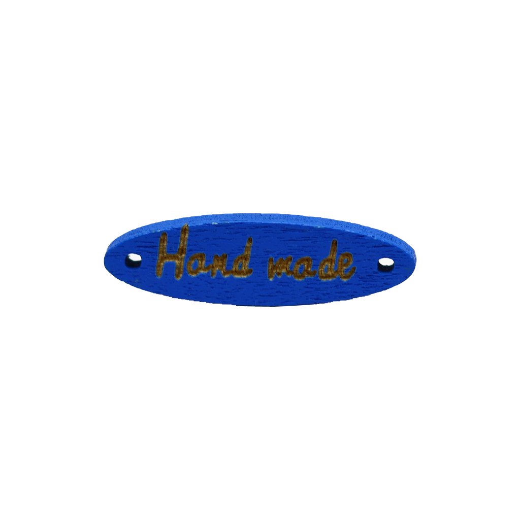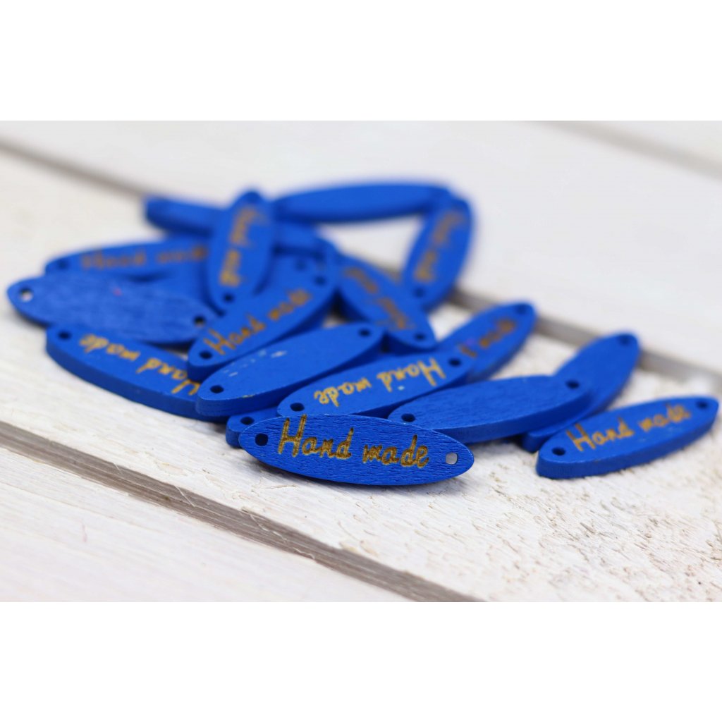 Wooden button in ellipse shape, blue (28 x 8 mm).