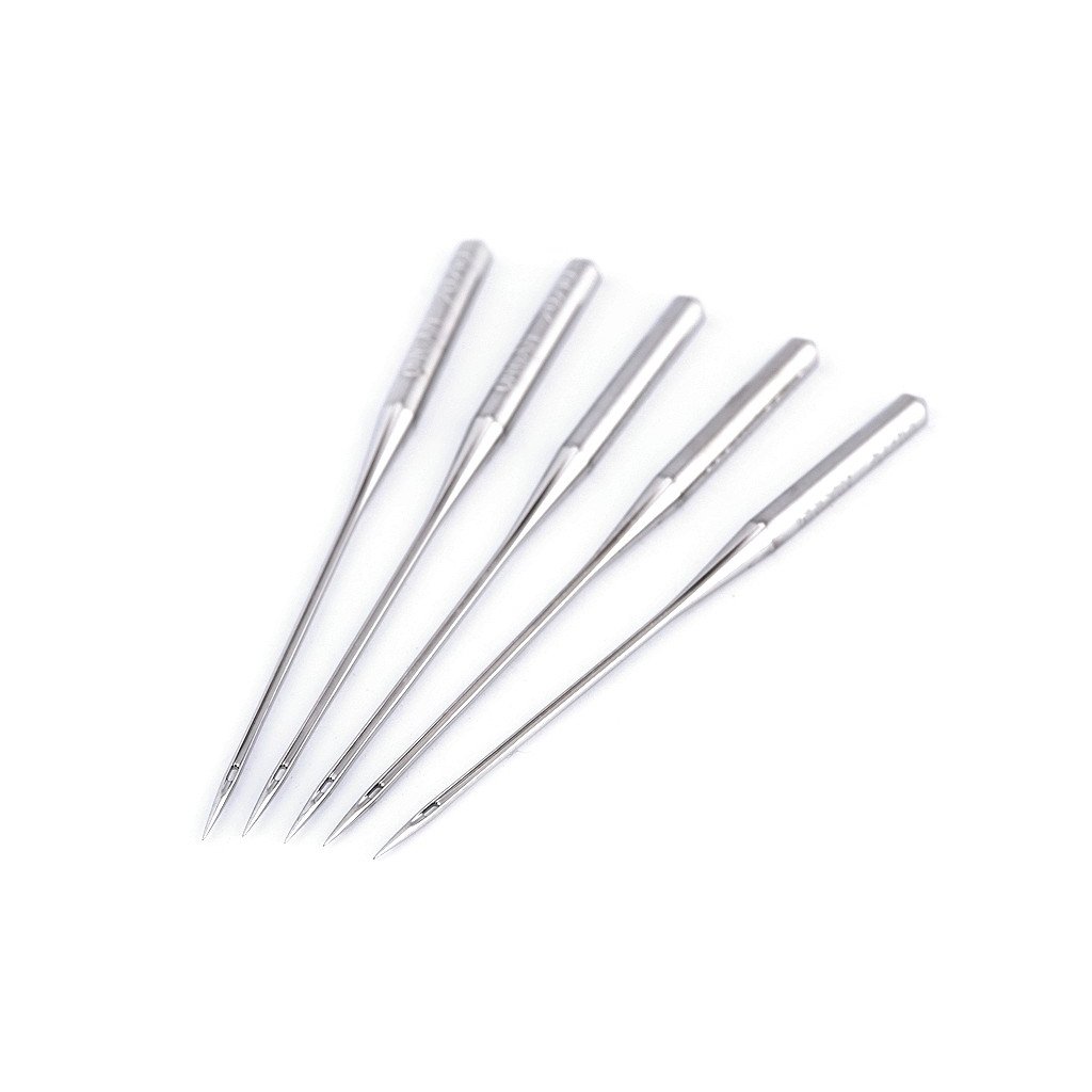 Universal Organ machine needlescan be used for common types of fabrics and materials. They are sharp and have a flat on one side.