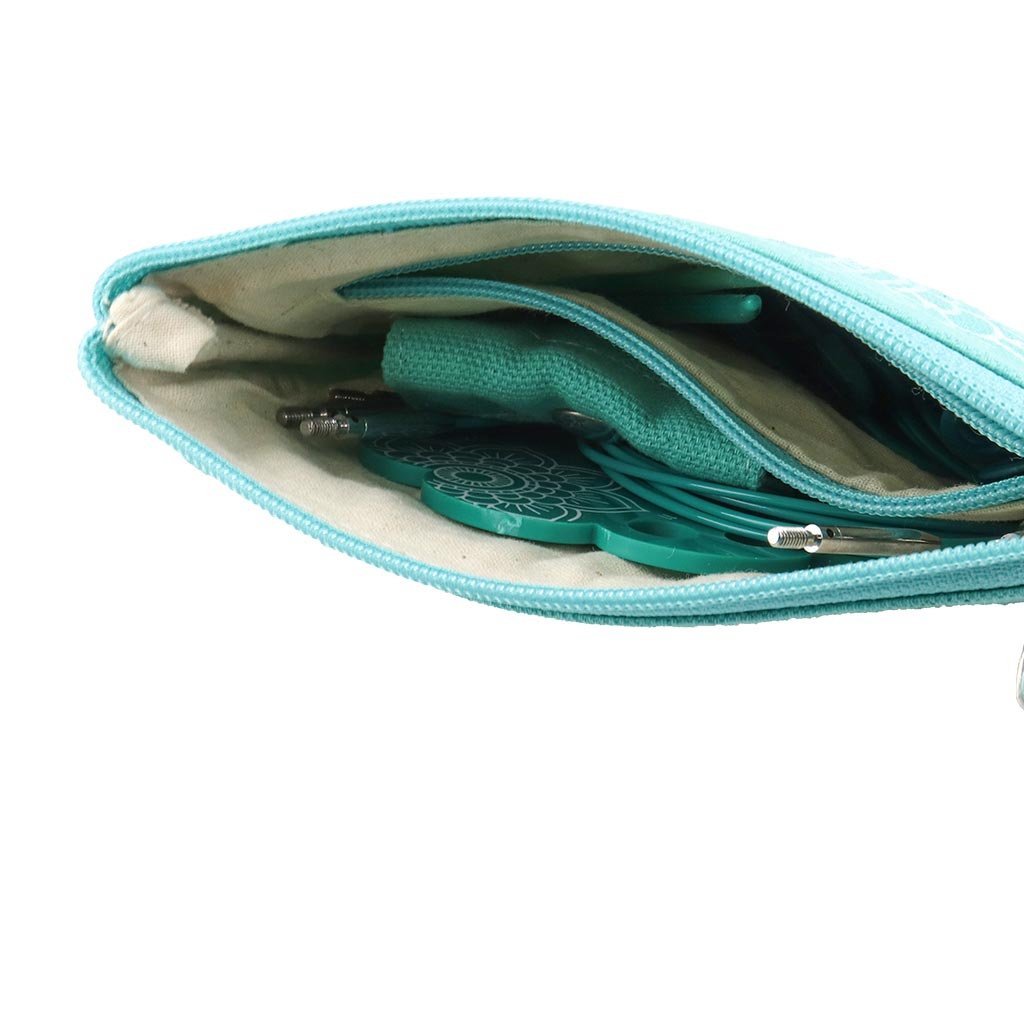 The beautiful set of interchangeable needles comes in a practical turquoise-coloured package, which fastens with a zip.