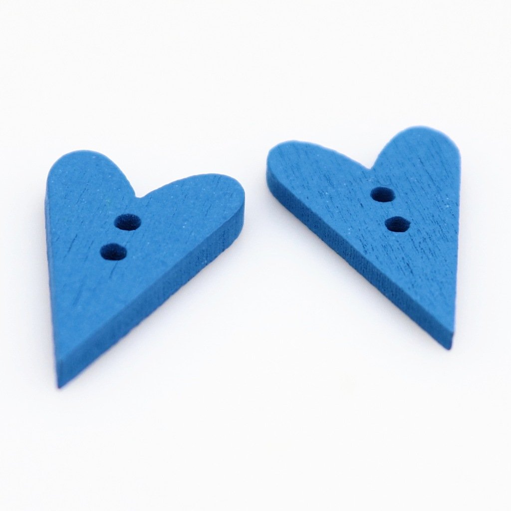 Heart button, wooden 25x15 mm blue.