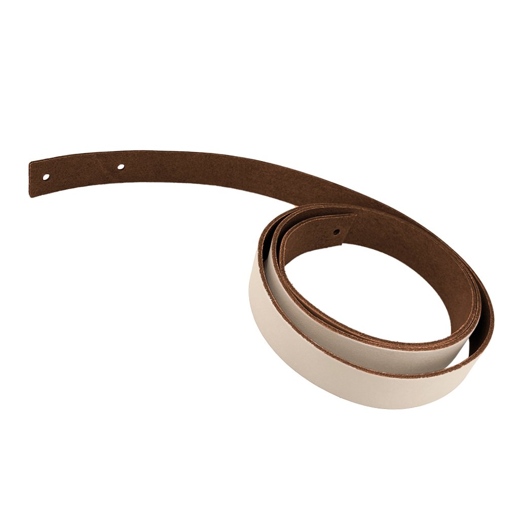 Kožený popruh prošívaný 58 cm, š. 2,5 cm, přírodní hnědý, karabina s oválným průvlekem, nikl