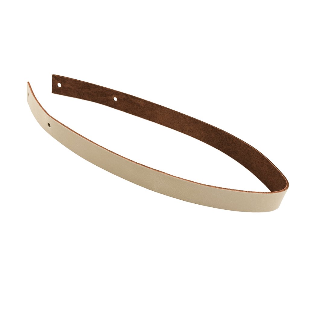 Kožený popruh prošívaný 58 cm, š. 2,5 cm, přírodní hnědý, karabina s oválným průvlekem, nikl