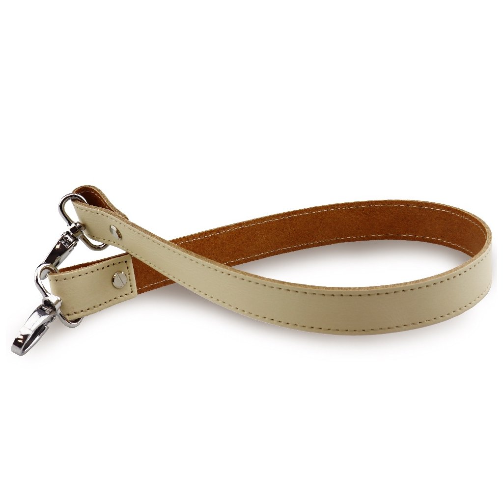 Quilted leather strap 58 cm, width 2,5 cm, cream, carabiner with oval hole, nickel.