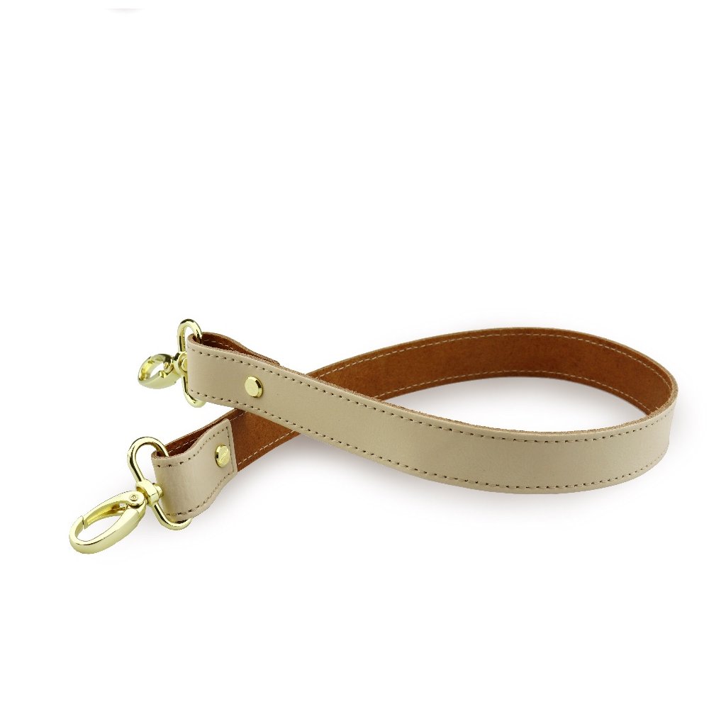 Quilted leather strap 58 cm, width 2,5 cm, cream, carabiner with oval hole, gold.