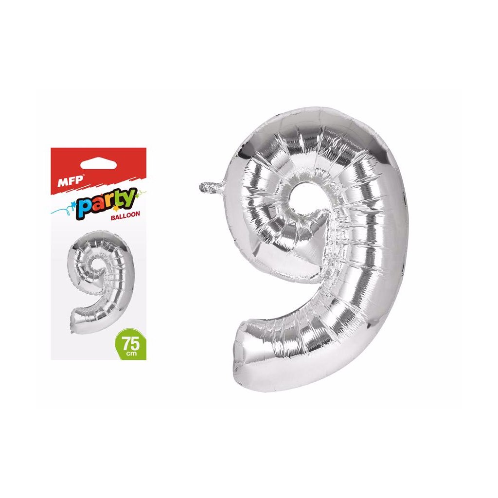 Foil inflatable balloon No. 9 - 75 cm, silver.