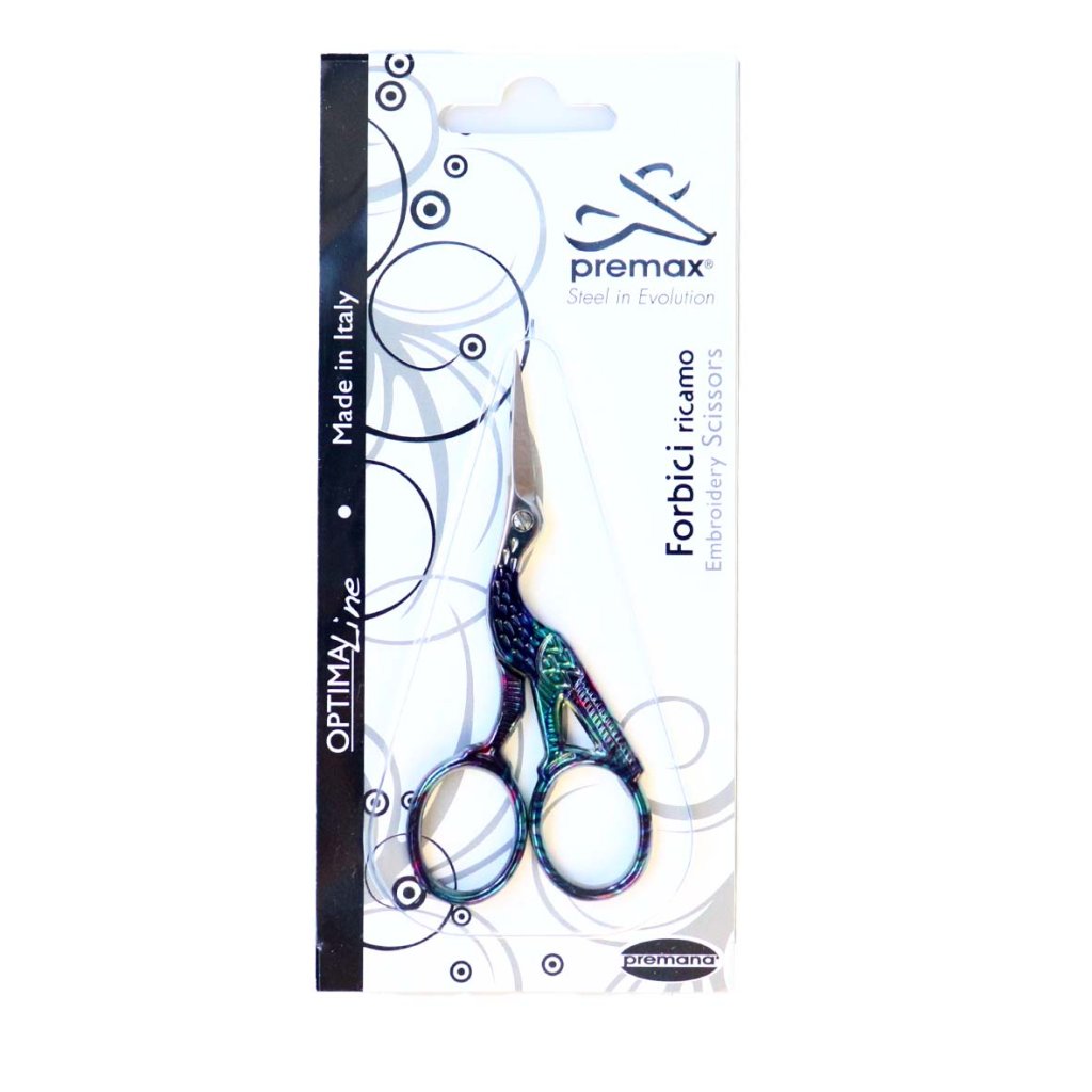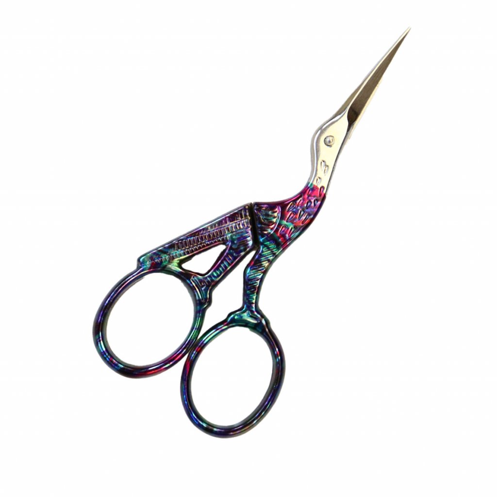 Colorful embroidery scissors 9 cm. Dimensions:Nine centimeters.Blade length:2.4 cm.Material:[[[Metal. The small embroidery scissors are very sharp and pointed, so they are suitable for sewing, cutting small items, etc. The shape of the stork gives the scissors an interesting, elegant look. Made in Italy]]]]Additional parameters