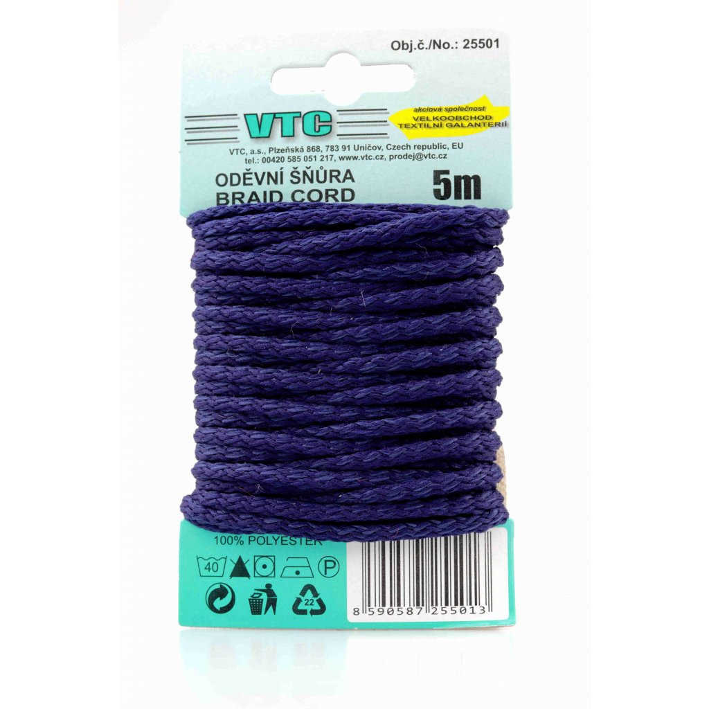 Oděvní šňůra 5 m na kartě - 25 námořnické modrá
