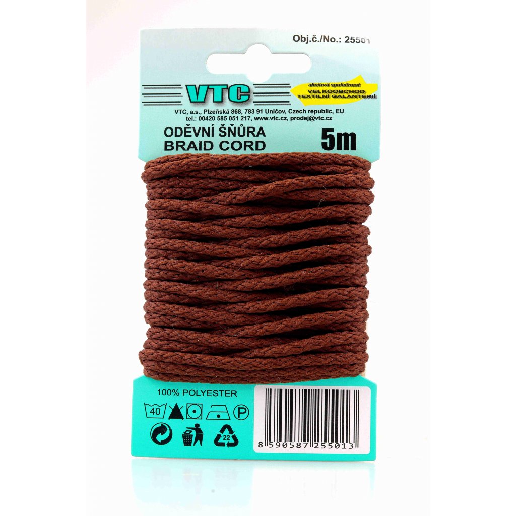 Oděvní šňůra 5 m na kartě - 46 hnědá