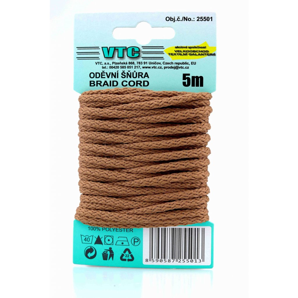 Oděvní šňůra 5 m na kartě - 47 světle hnědá