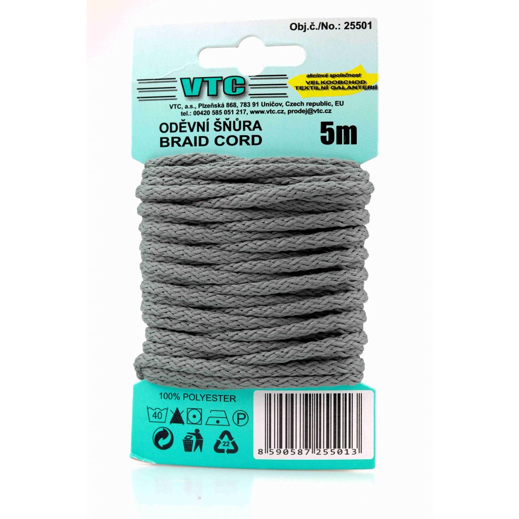 Oděvní šňůra 5 m na kartě - 49 tmavě šedá