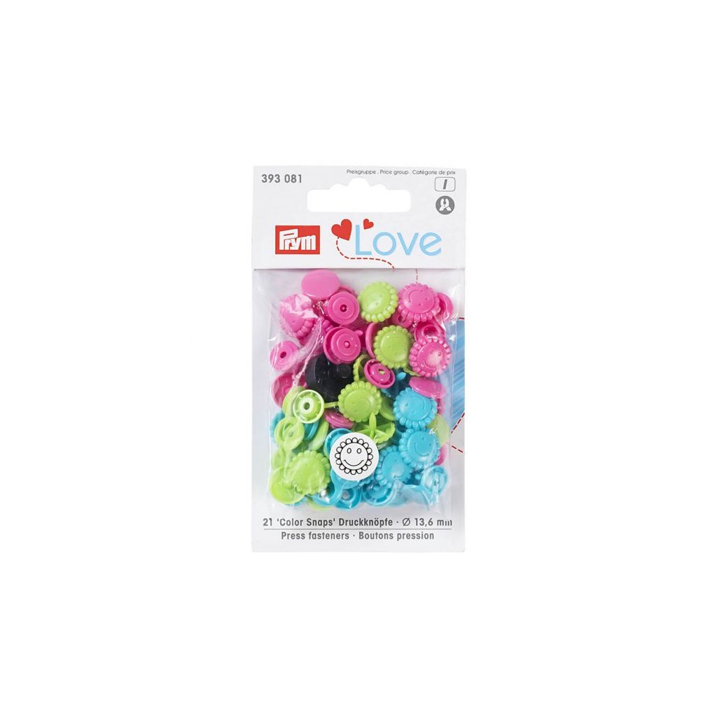 Patentky plastové květiny 13,6 mm, růžová, zelená, modrá