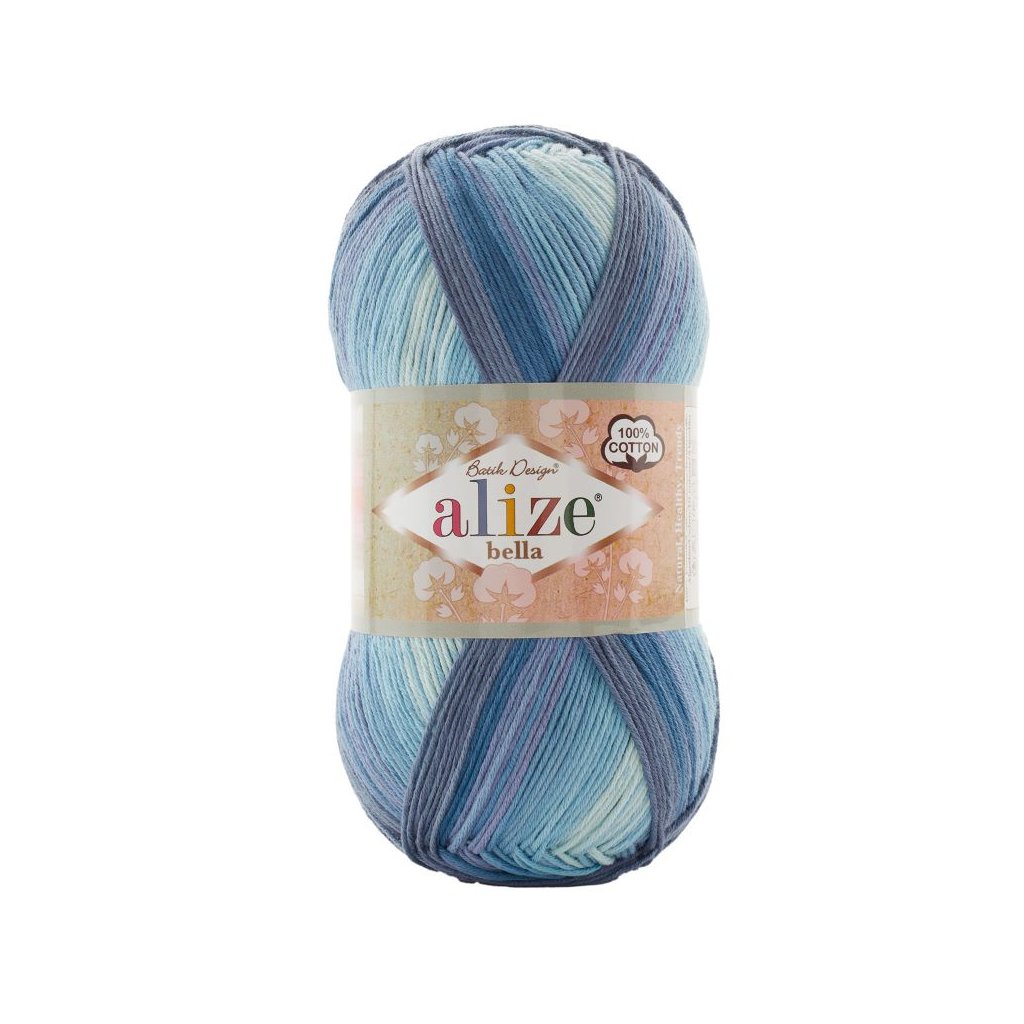 Yarn Bella Batikis a 100% cotton knitting and crochet yarn, suitable for creating from spring to autumn, e.g. for hats, neckerchiefs, headbands, dresses, skirts, handbags and also home accessories such as placemats, potholders or summer blankets and blankets for children.