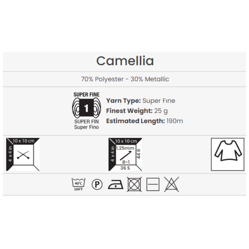 YarnCamelliais a thin, shimmering crochet yarn, suitable for crochet blankets, placemats etc.