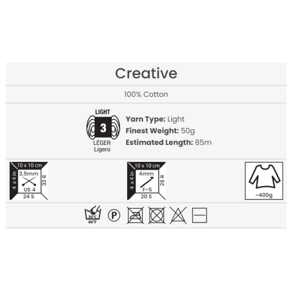 Creativeis a thicker cotton yarn that can be used for beautiful spring-autumn knits for children and adults, but also for toys, blankets, shawls and interior accessories.