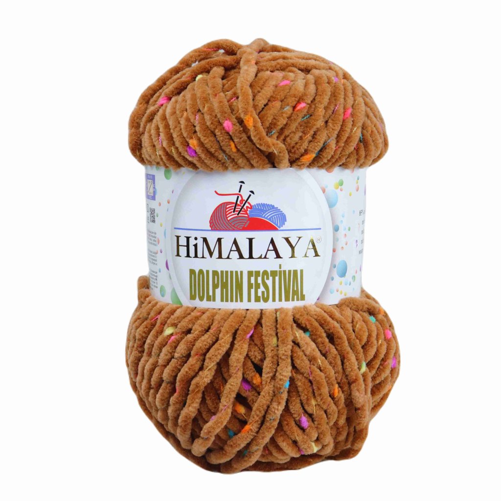 HimalayaDolphin Festivalis a chenille yarn with coloured fibre and pips. The fibre is wrapped around the yarn.