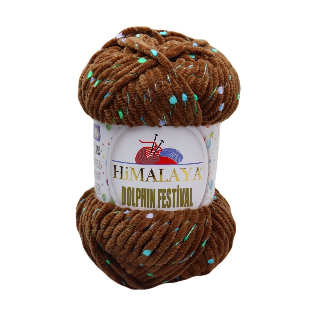 HimalayaDolphin Festivalis a chenille yarn with coloured fibre and pips. The fibre is wrapped around the yarn.