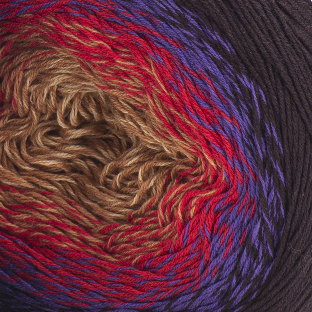 příze Flowers 265 karamelová, červená, fialová, hnědá