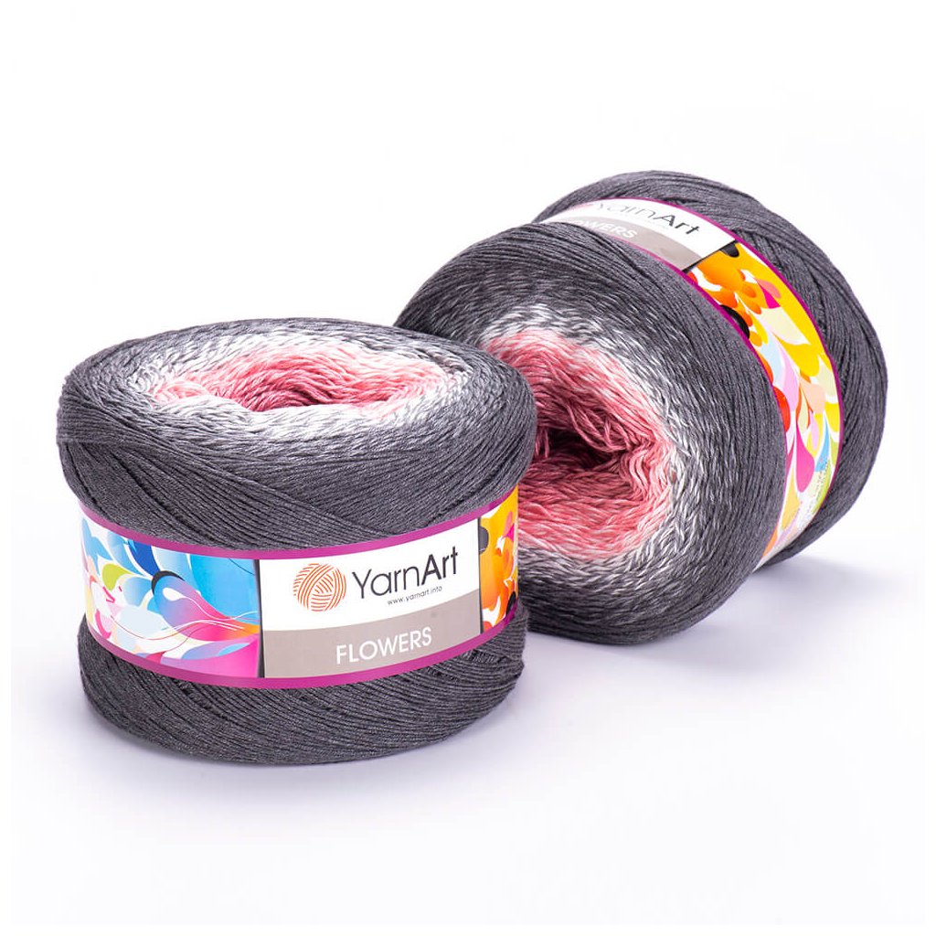 příze Flowers 279 fréziová, lososová, tmavě šedá