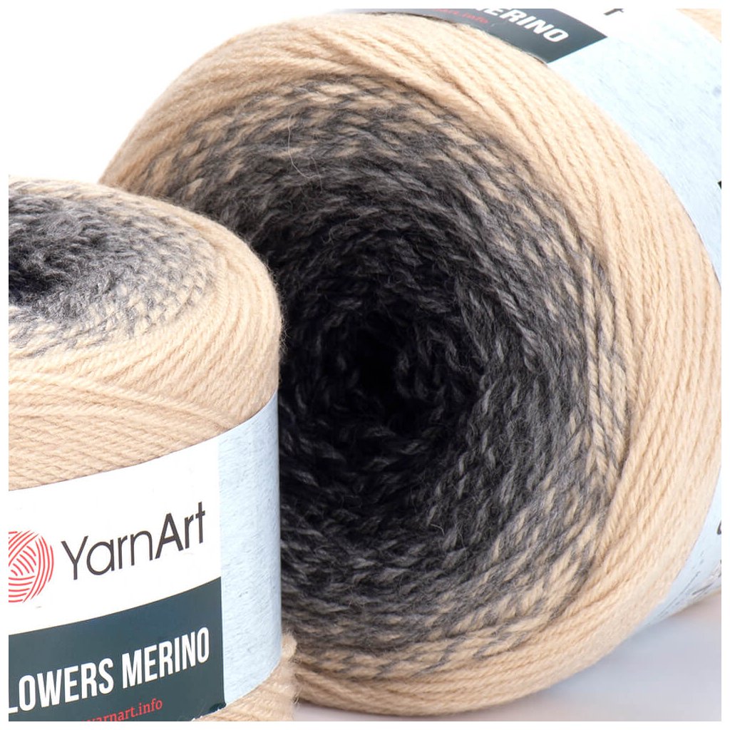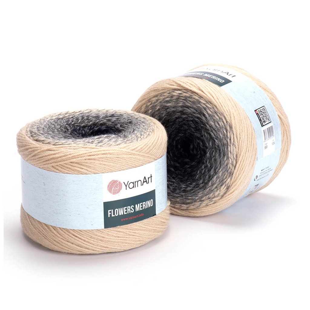 Flowers Merino yarn can be used primarily for warmer patterns such as hats, sweaters, scarves, shawls, tunnels, neckwear, ponchos, shawls, bedspreads, sweaters, vests and more. The individual colours in the ball intermingle gradually.