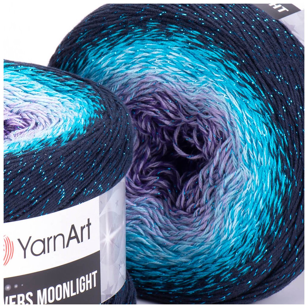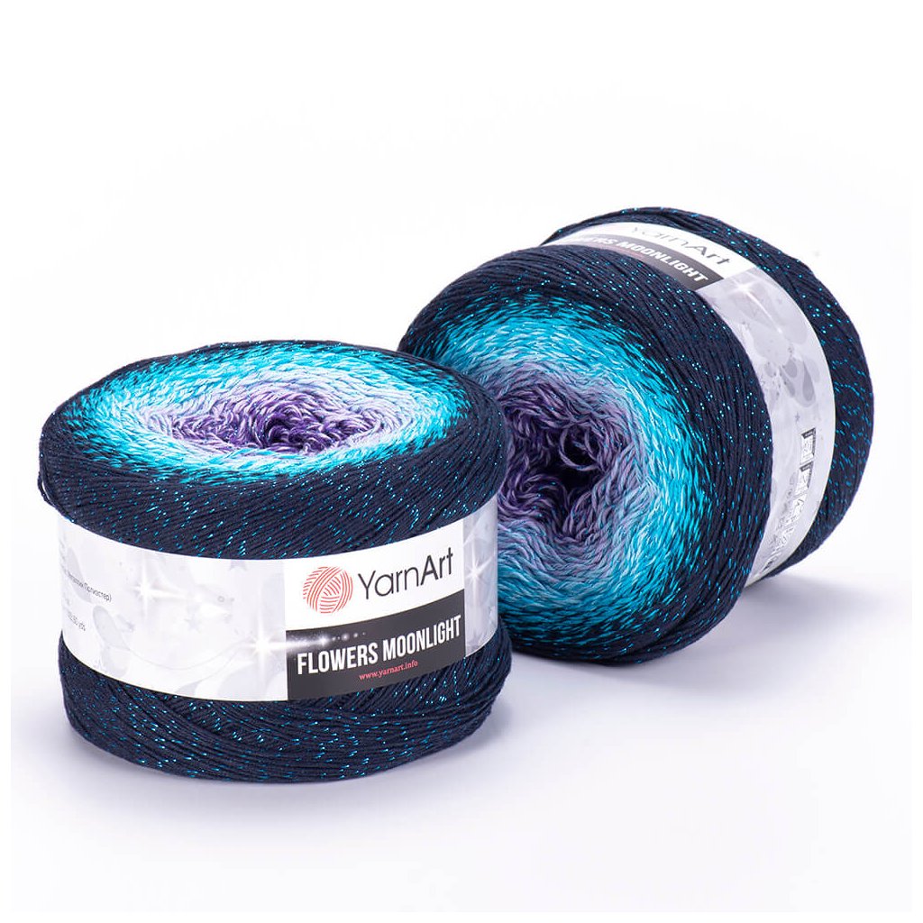 Yarn Flowers Moonlight 3254 purple, lilac, turquoise, dark blue.