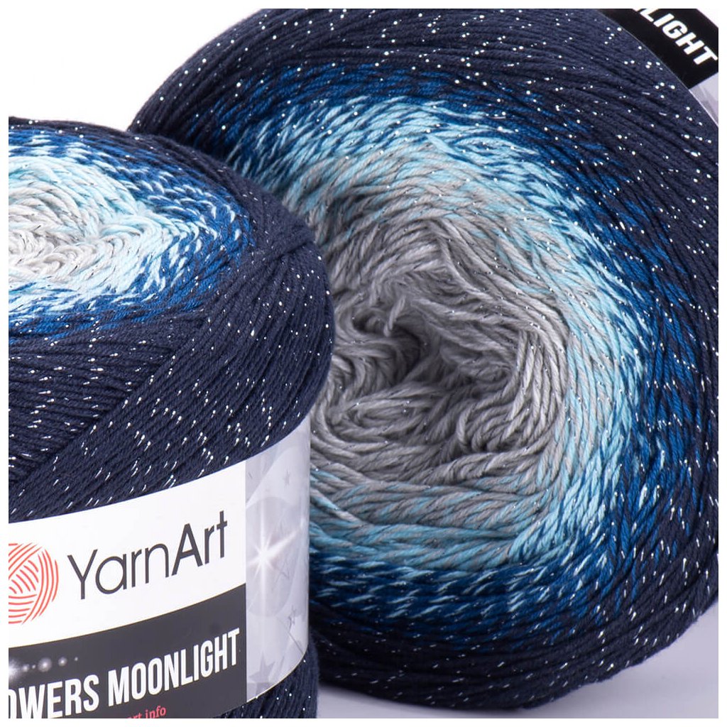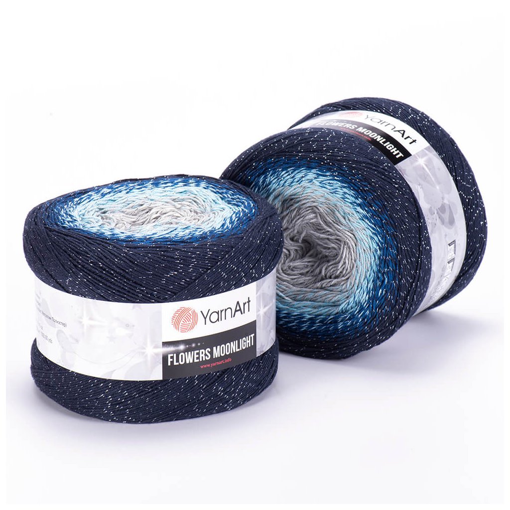 Moonlight Flowersis a mixed yarn with gradual transitions. You can use it mainly for scarves and shawls, but also for light sweaters, dresses, skirts, vests and other accessories.