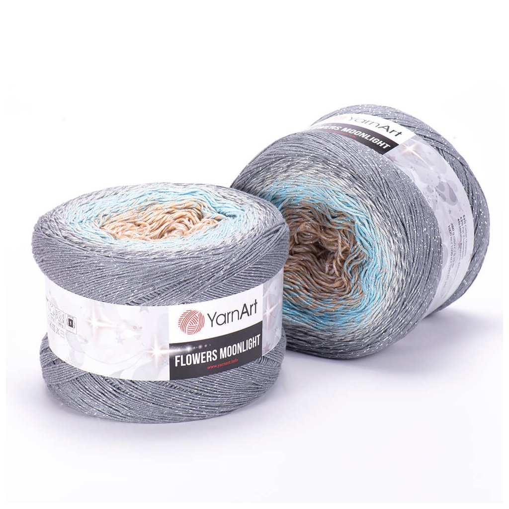 Moonlight Flowersis a mixed yarn with gradual transitions. You can use it mainly for scarves and shawls, but also for light sweaters, dresses, skirts, vests and other accessories.