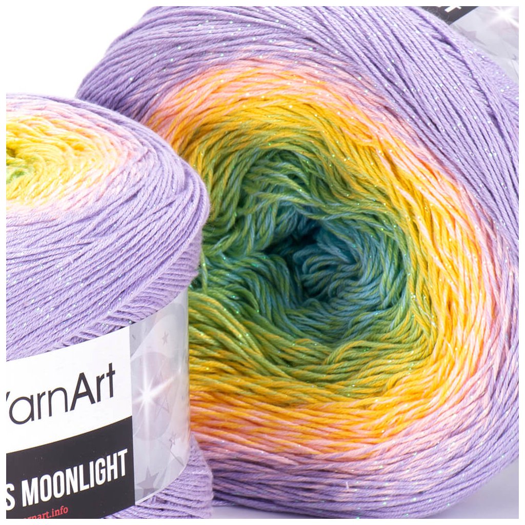 Yarn Flowers Moonlight 3285 mint, green, yellow, violet.