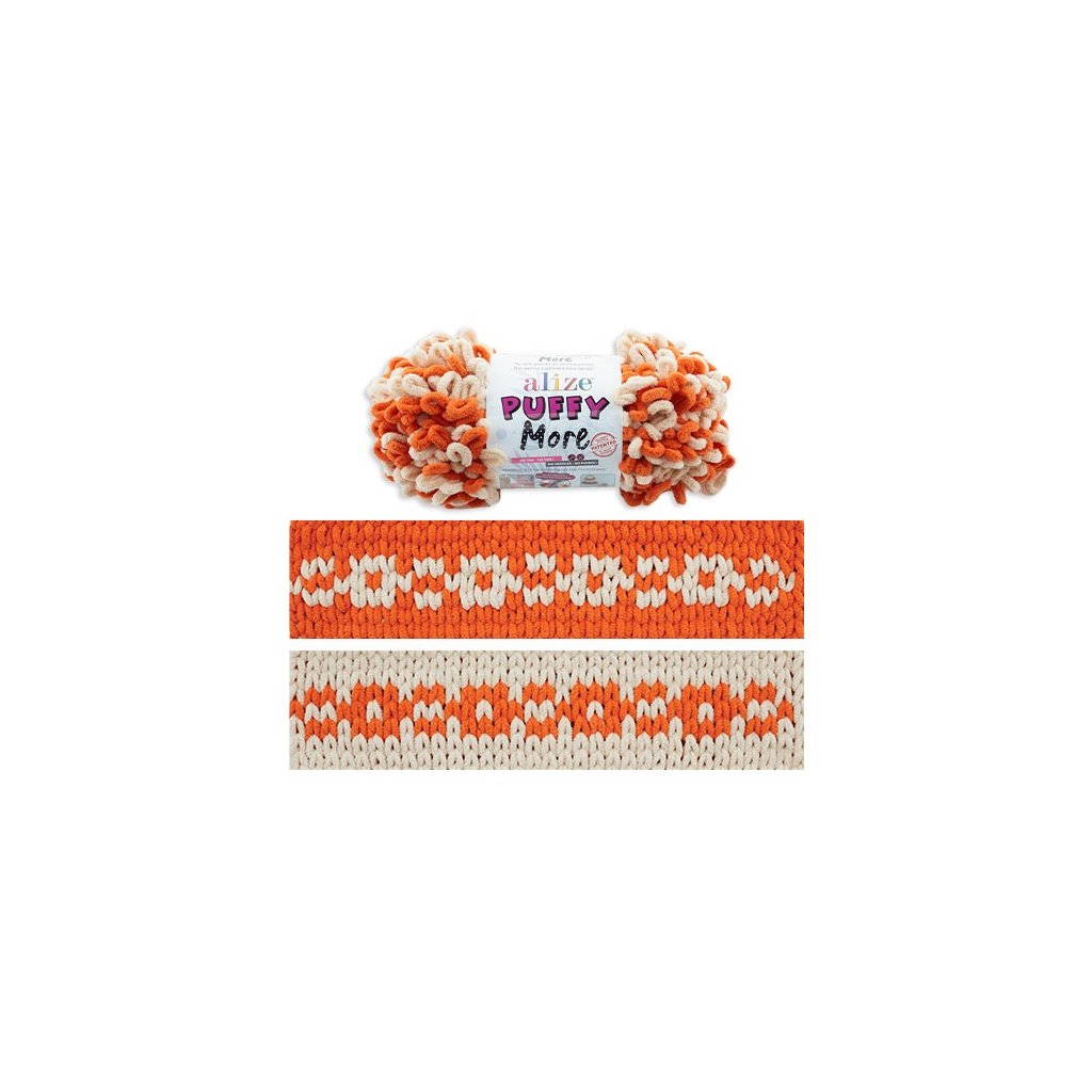 příze Puffy More 6538 oranžová a cappuccino