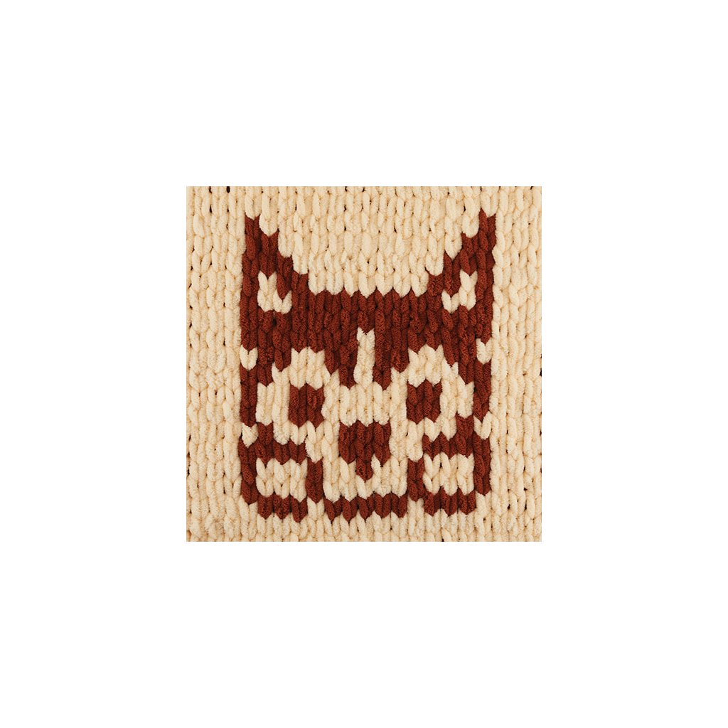Two-coloured chenille yarn with large stitches for hand knitting.