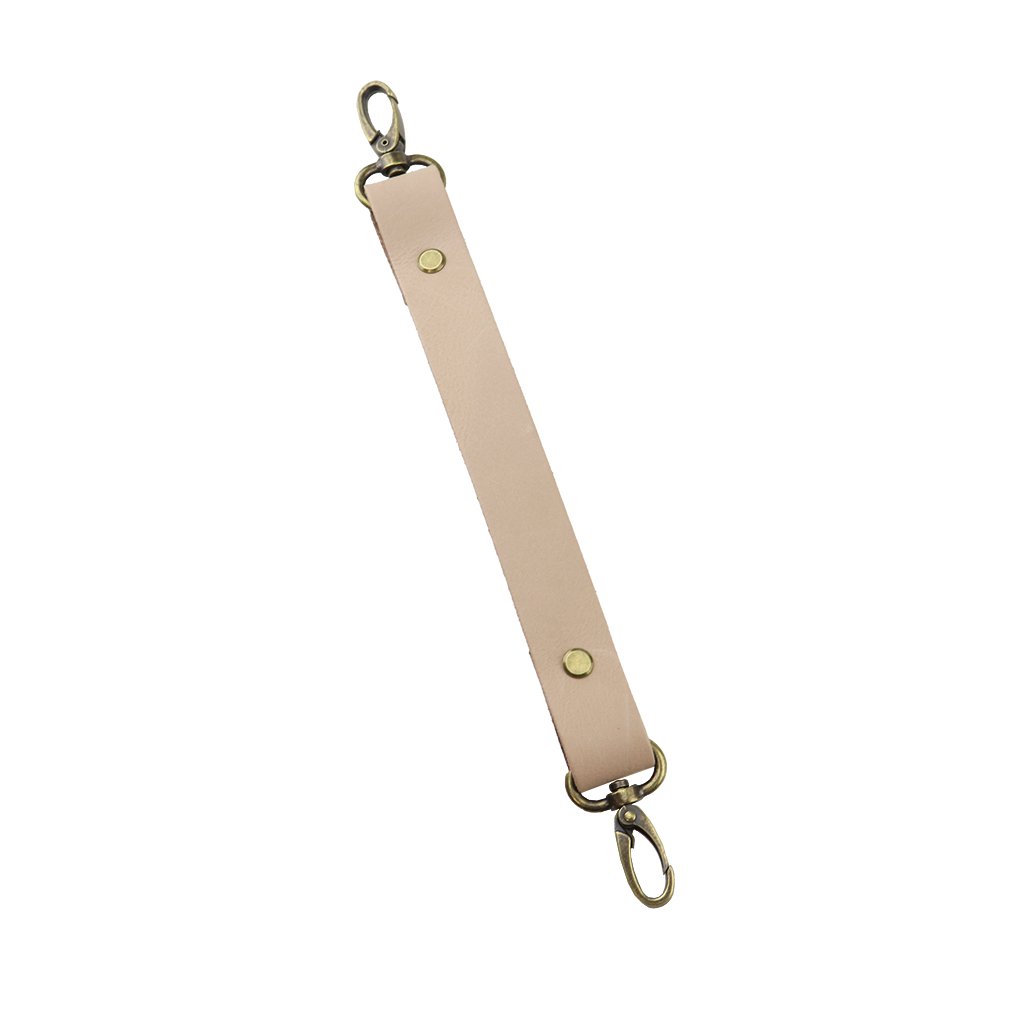 Sada kožený popruh 22 cm š. 2 cm krémový s karabinou staromosaz