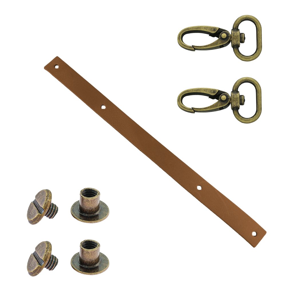 Sada kožený popruh 22 cm š. 2 cm hnědý s karabinou staromosaz
