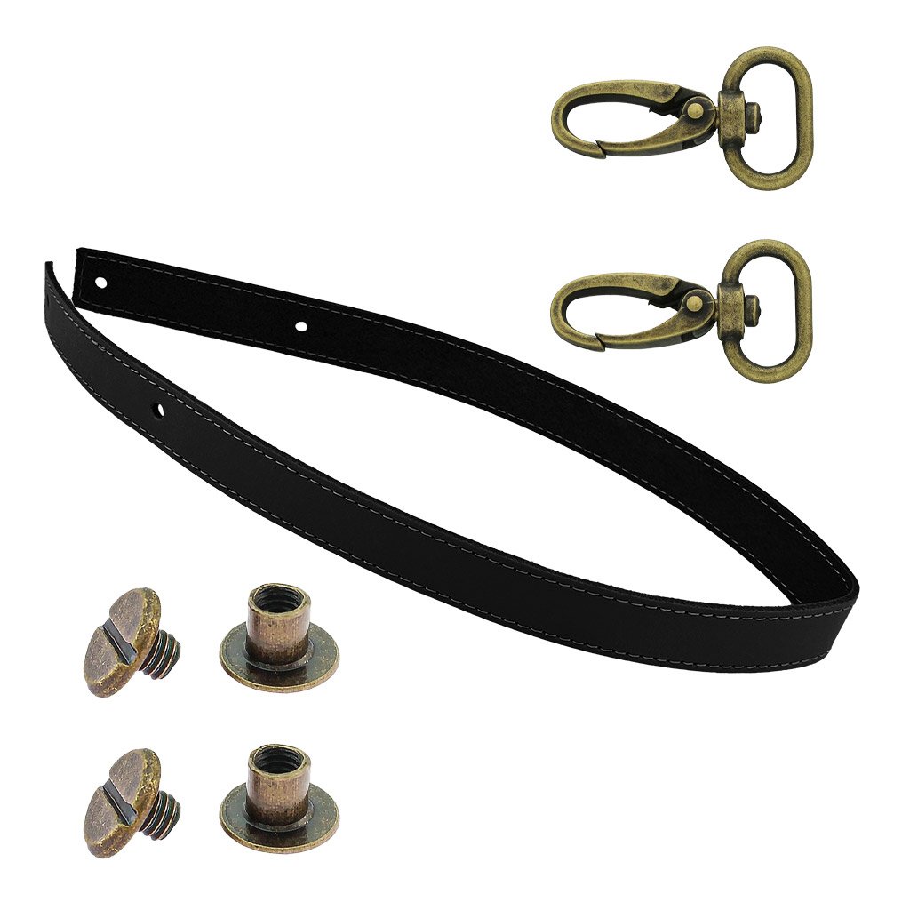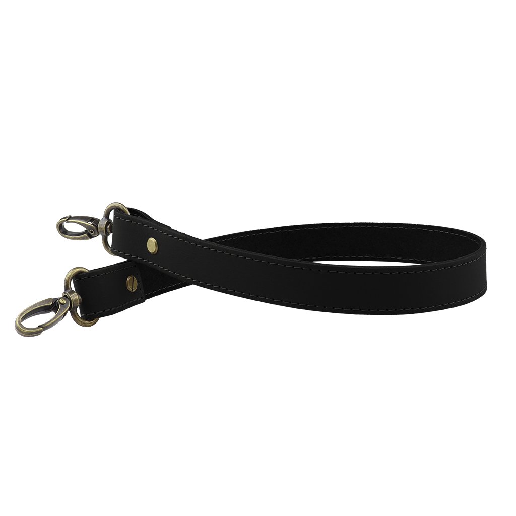Sada kožený popruh prošívaný 58 cm š. 2,5 cm černý s karabinou staromosaz