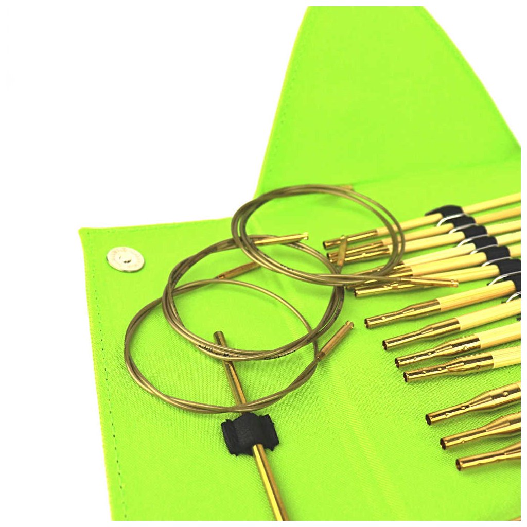 The bamboo needles are smoothed so that the yarn will not fray. Each needle is finished with a gold-coloured metal connector into which the interchangeable cables snap.